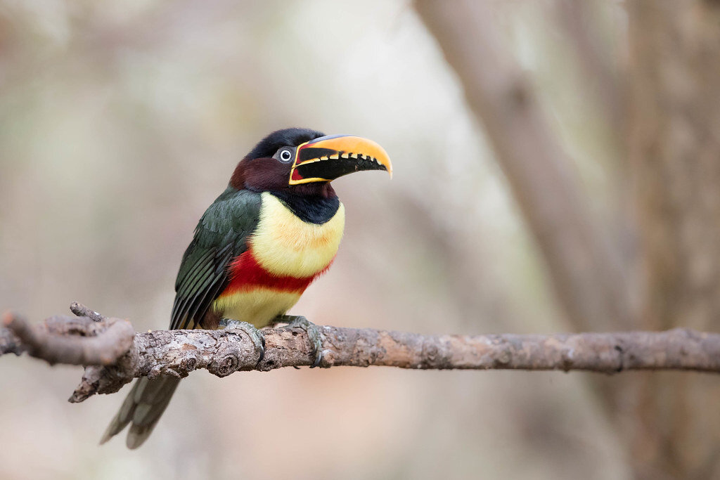 Буроухий арасари (Pteroglossus castanotis) живет в центральной и юго-восточной части Южной Америки. В английской версии названия - "каштановоухий" арасари. Эти птицы принадлежат к роду арасари, который относится к семейству тукановых (Ramphastidae). Буроухий арасари более крупный, чем его сородич - ошейниковый арасари, но в остальном эти птицы очень похожи. Различают два подвида Буроухих арасари: P. c. castanotis - в 1834 найден в восточной и южной Колумбии, северо-западной Бразилии, восточном Эквадоре. P. c. australis - в 1867 найден в восточной Боливии, западной и южной Бразилии, Парагвае и северо-восточной части Аргентины. В целом, ареал обитания Буроухих арасари включает в себя южную часть бассейна Амазонки, особенно юго-запад, предгорья восточных Анд, центрально-южную часть Колумбии на 900 километров вглубь. Данный вид птиц особенно широко распространен в Боливии, особенно в заповеднике Акикуана, расположенном в департаменте Бени, недалеко от города Риберальта, столицы боливийской