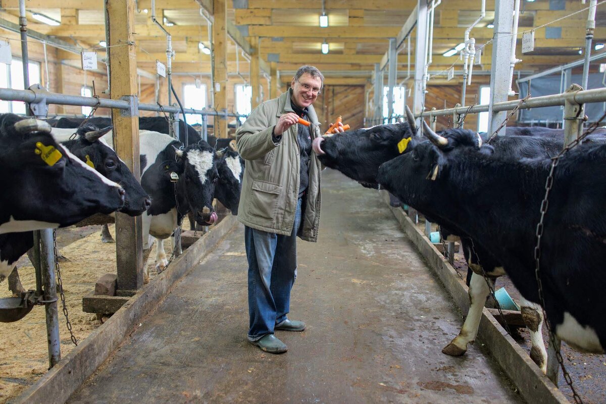 С чего начать "Сельское хозяйство"? Взял кредит, чтобы купить первых коров Мое фермерское хозяйство началось с личного подворья и нужды кормить семью. Я жил в Москве и потихоньку строил дом в Наро-Фоминском районе Московской области — где-то четыре года катался туда-сюда. В 2000 году дом был готов, и мы переехали туда с женой и сыном. Через год у нас родилась дочка, и нам подарили козу — чтобы в доме всегда было свежее молоко. С дочкой помогала няня, такая двуспальная женщина, которая всё время причитала: «Зачем вам коза, от нее молока чуть, давайте заведем корову». Собрали семейный совет. Козу решили съесть и завести вместо нее деревенскую корову. Вскоре корова объелась айвы, у нее забился желудок и кишечник, и ее нам тоже пришлось съесть Так в хозяйстве появилась племенная корова Звезда, племенная значит породистая. Она давала хорошее молоко, его было много, поэтому стали делать домашний творог, сметану, раздавать молоко соседям и друзьям. В 2008 году грянул кризис, и мы решили, что