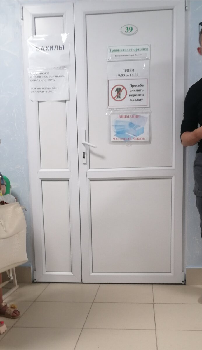 Потом поковыляли в регистратуру за талончиком к трамватологу. Завели мне карту с московским полисом без проблем и лишних вопросов. Очередь к врачу была живая, без талонов. Еще полтора часа ожидания под кабинетом...