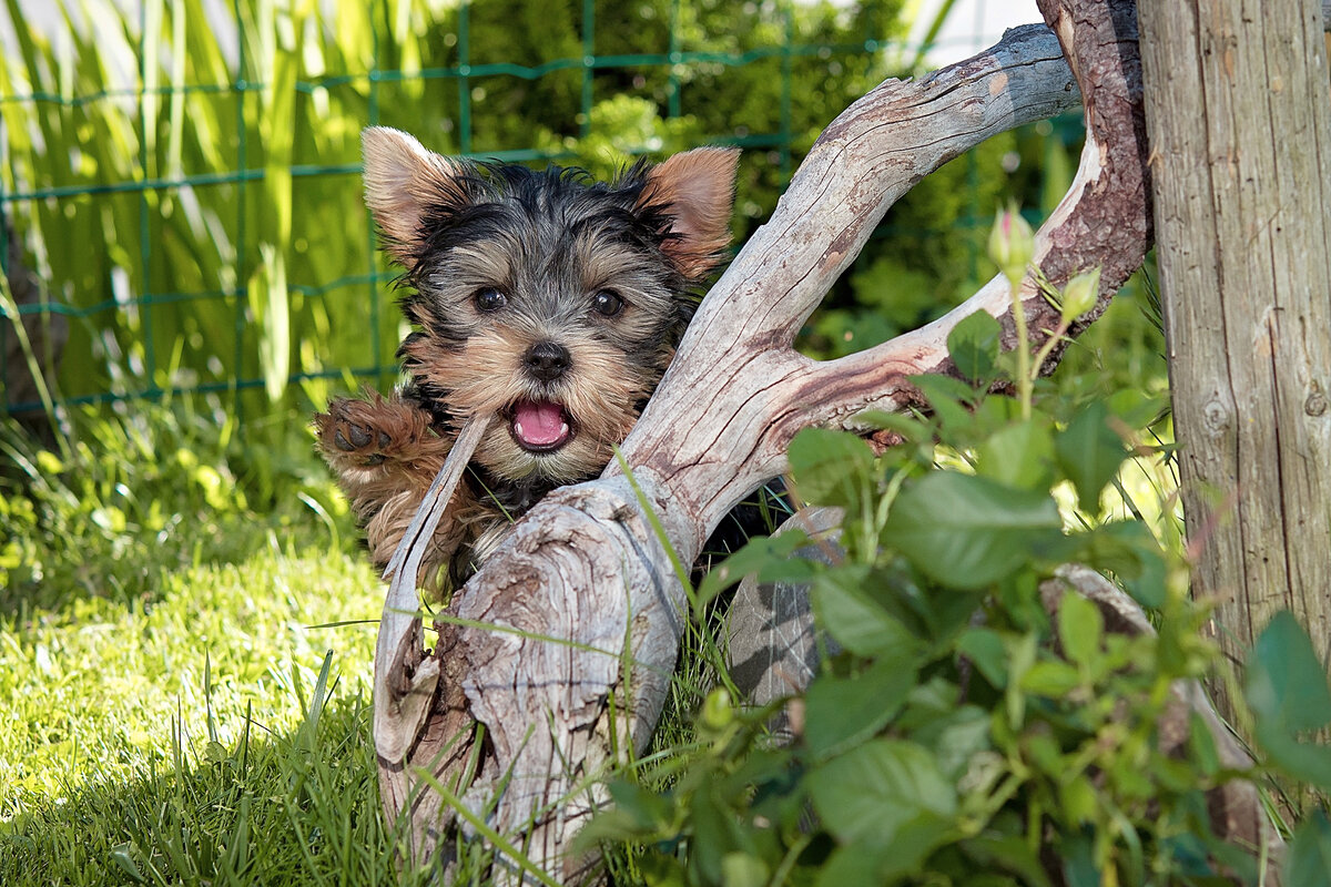 В йорках залиты целые галлоны хитрости. Животное по одной интонации человека распознает, что ему сейчас придётся несладко — и благополучно спрячется. Как только гнев на шалость пройдёт, йорк выползет из ниоткуда.
