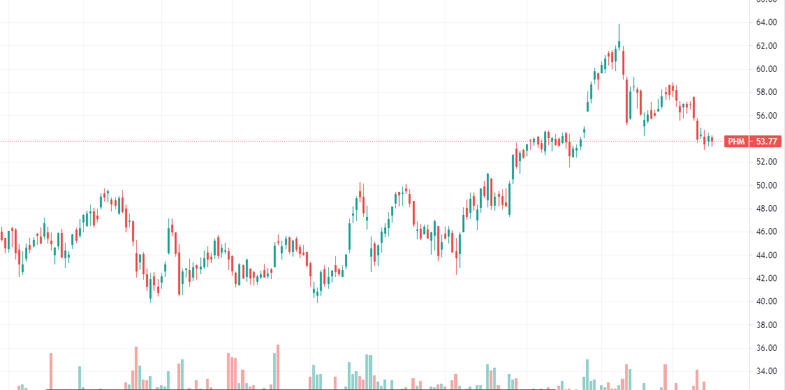 Всем привет! Сегодня речь пойдет о компаниях строительного сектора США, который на данный момент находиться в неплохой коррекции, упав примерно на 14% с весенних пиков. Сегодня моя задача обратить ваше внимание на имеющийся факт, т. е. на просадку в сфере строительства и недвижимости. А также дать пару подсказок из собственных исследований отчетностей компаний. У меня небольшой инвестиционный портфель, стоимостью в 100 000 рублей. Опыт инвестирования 1 год. Поэтому советы и рекомендации я давать не буду — решения принимаете вы. Немного о секторе Residential Construction Итак, строительный сектор США (residential construction) представлен несколькими крупными компаниями с капитализацией более 10 млрд. долларов. В моем портфеле как раз имеется последняя компания — PulteGroup — которая за полгода показала весьма солидный прирост. Именно ее изучением я занялся, чтобы найти ответ на вопрос о возникшей коррекции. Просмотрев отчет PulteGroup за 2020 год, а так же за 1 квартал 2021 года, я