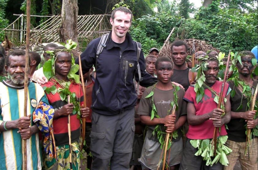 Это пигмеи. Рост взрослого мужчины не превышает 145 см, а женщин - 133 см. Это не просто низкорослые люди, это целый народ, проживающий в экваториальных лесах Африки. Тело пигмеев уменьшилось в процессе эволюции. Для пропитания маленькому человеку требовалось меньше еды, его тело меньше нагревалось под жаркими лучами африканского солнца, а в схватке с дикими животными, он был более юрким и выносливым. Смогли выжить только низкорослые сородичи и постепенно ген низкорослости стал отличительной особенностью пигмеев. Находясь долго в рабстве, они утратили свой родной язык и говорят на языках окружающих их народов. Как и наши далекие предки, они охотятся на антилоп и обезьян, ищут места богатые фруктами и медом. Для охоты пигмеи используют стрелы с железными наконечниками, пропитанные отравляющими веществами. Мясо составляет всего лишь 9% их рациона. Большую часть добычи они обменивают на металл, ткани и табак. Из растений они готовят лечебные и ядовитые зелья. Для того чтобы поймать р