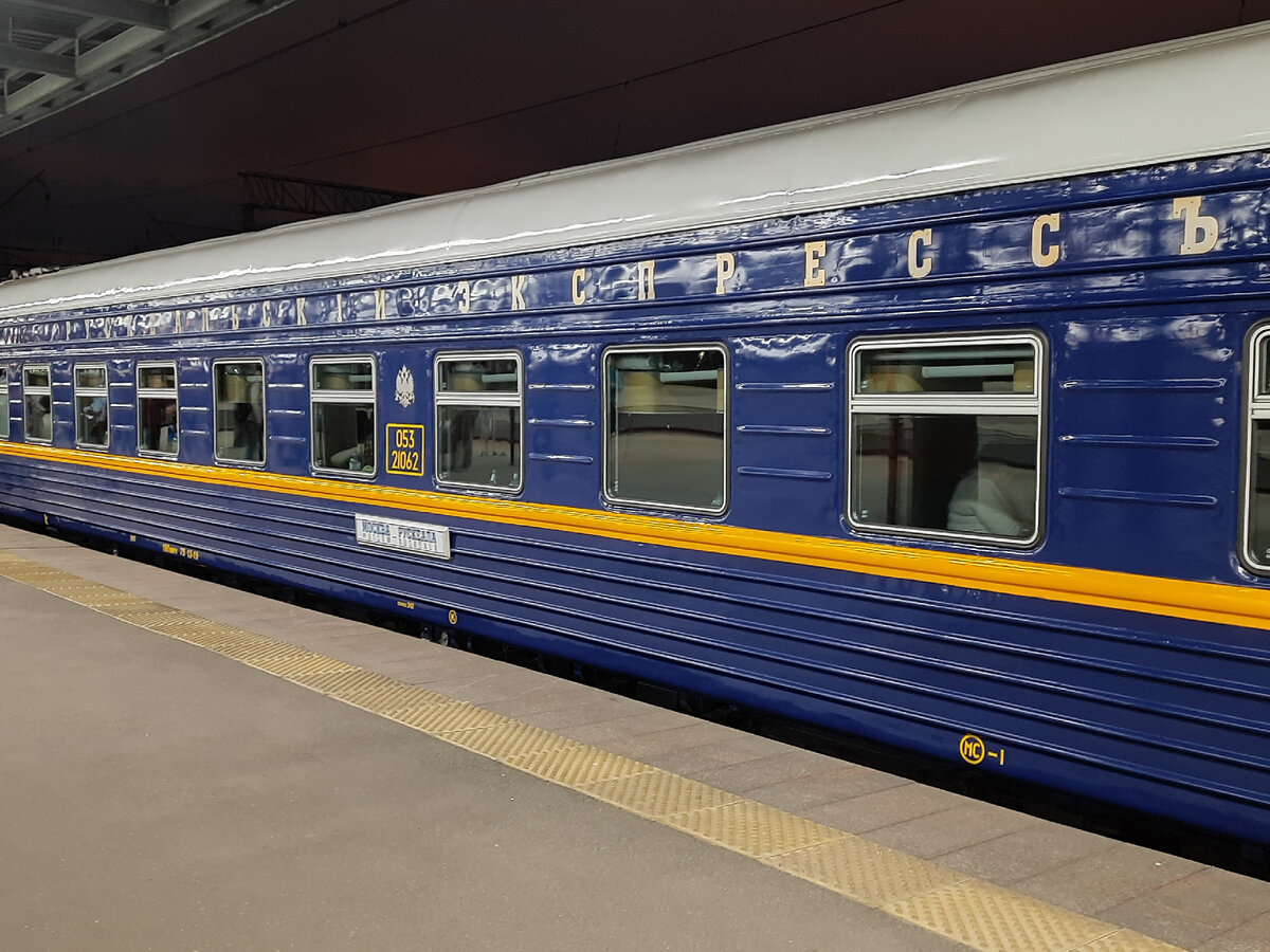 На поезд я сел на Ладожском вокзале. Вагоны имеют фирменную ливрею «Рускеальского экспресса».