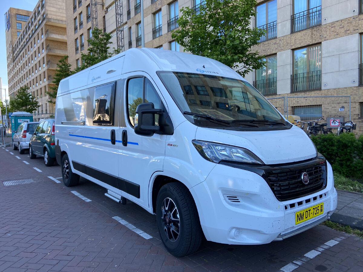 Сейчас вы читаете эту статью, а в Россию едет, а может быть уже и стоит на площадке в Москве компактный автодом Sun-Living V60 SP Family на базе Fiat Ducato. Я же нахожусь внутри и буду пробовать заснуть на второй полке. Она дарит дополнительные два места и позволяет путешествовать в этом автодоме вчетвером. В задней части автодома располагаются две кровати. На верхнюю я забрался по приставной лестнице. Чтобы лестница не мешала вставать жителям первого яруса, я её вешаю в специальное место на крючки. Вторая полка имеет размеры 174 х 144 см. Я помещаюсь, но впритык. Мой рост ровно 174. Разрешённая нагрузка на кровать указана прямо на бортике, и это 150 кг. Значит, что не толко дети, но и лёгкие взрослые смогут тут поспать. На стикере указано, что детей до 6 лет сюда укладывать нельзя. Кстати, никаких страховочных сеток тут нет. Наверное поэтому. Высота от матраца до потолка 55 см. Это позволяет легко передвигаться по кровати и переворачиваться. Над ногами разместили два подвесных ящи