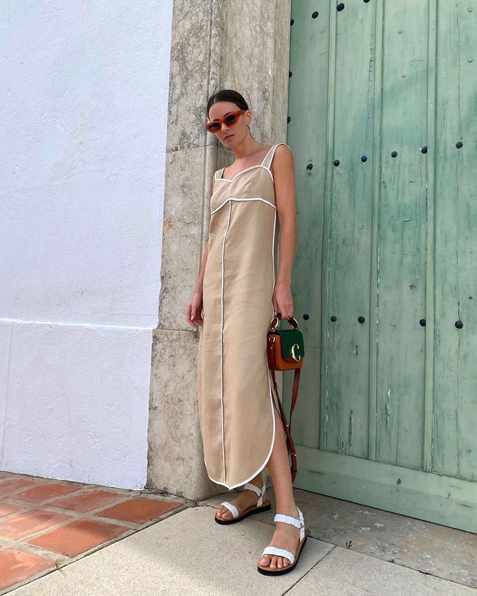 Нейтральный бежевый цвет актуален во все сезоны, его универсальность и практичность сложно переоценить. В этой статье представлены модные летние образы в благородном бежевом цвете, которые не сложно будет повторить любой современной моднице. Льняное бежевое макси платье с контрастными белыми вставками и асимметричным низом отлично смотрится с сандалиями и комбинированным клатчем. Оверсайз платье-рубашка с объемными рукавами благородной миди длины стилисты дополнили контрастным черным ремнем, трендовыми сандалиями нейтрального оттенка и плетеной оверсайз коричневой сумкой из натуральной кожи. Этот летний аутфит отлично подойдет, как для города, так и курорта. Следующий минималистичный аутфит включает в себя бежевую майку, заправленную в макси бежевую юбку на запах с объемными карманами. Если вы в поиске базового наряда для летнего сезона, в котором вы будете чувствовать себя стильно и комфортно, тогда бежевый комбинезон именно то, что вам нужно. Этот наряд можно носить с громоздкими кро