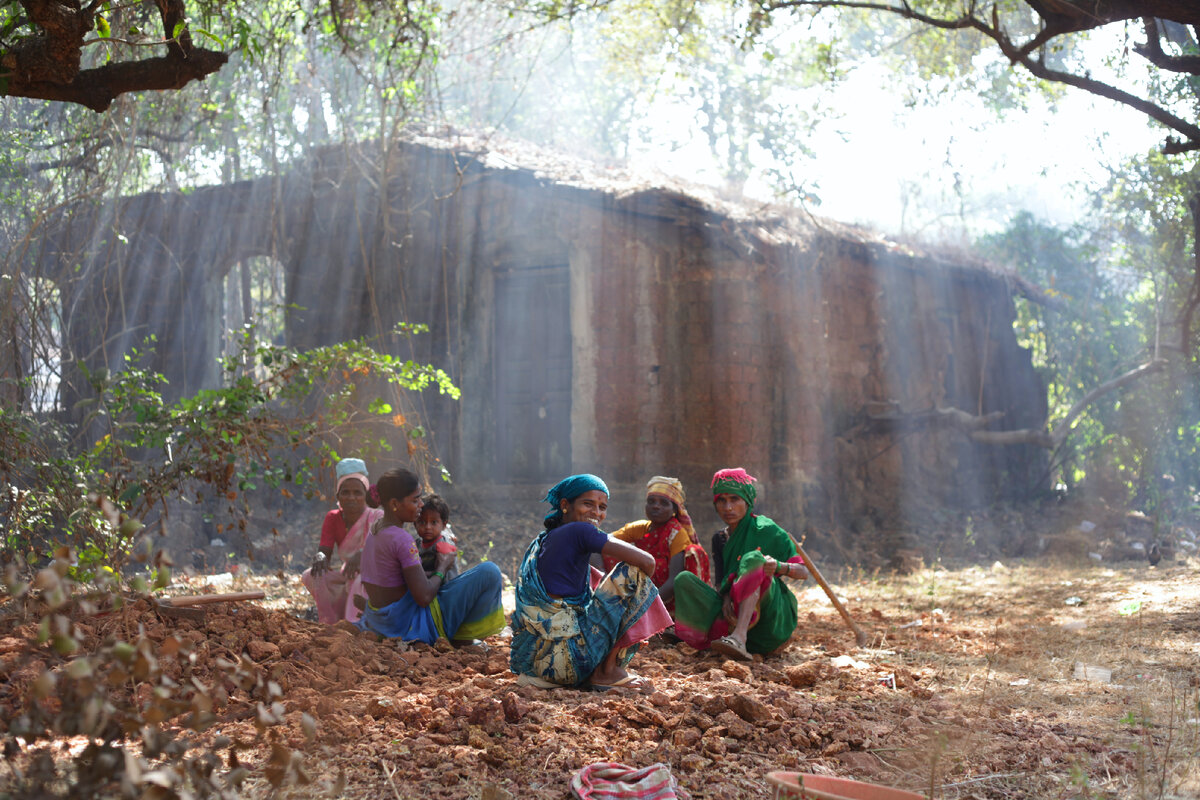 Так начинается рабочий день индийских женщин, которые носят камни и землю в корытах на головах.