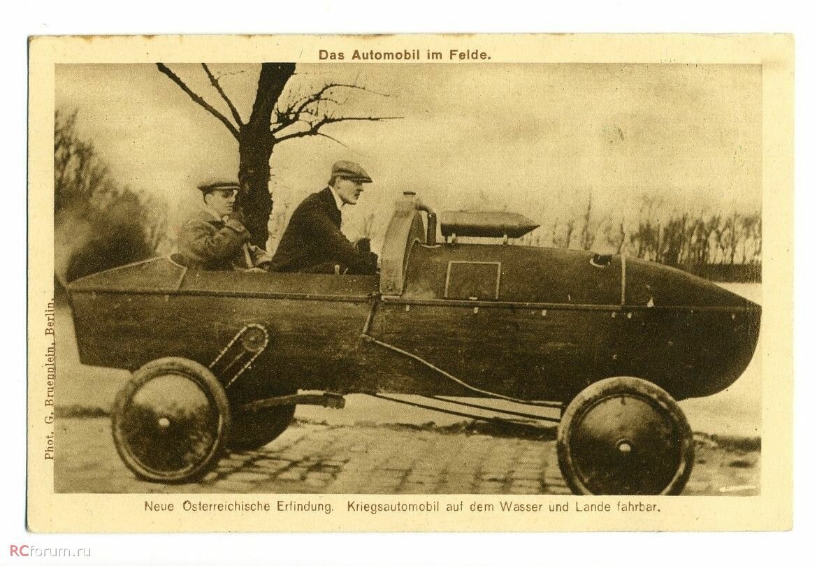 Новейшее австрийское изобретение - военный автомобиль для воды и суши!!! С таким заголовком вышла одна из газет весной 1915 года. Заметка была вызвана испытания нового автомобиля-амфибии изобретателя Людвига Цайнера, когда любая новинка во всей Европе примерялась - а не удастся её приспособить к военному делу?