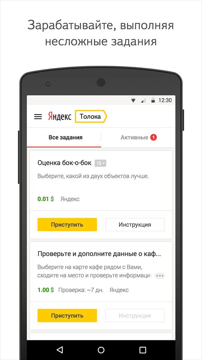 Сколько и как можно заработать на Яндекс Толока? Приветствую тебя, уважаемый читатель. В этом блоке буду рассказывать о методах заработка в интернете. Начну с сервиса Яндекс Толока, в нем можно заработать на выполнениях простых и не сложных заданий. Заработок начисляется в $, задания не сложные: "оценить фото водителей, указать расположение и ориентацию дорожных знаков или автомобилей, указать что изображено на картинке (варианты ответов так же даются), указать что есть на фото (люди, машины, светофоры, дорожные препятствия) и т.д. и т.п." Имеются полевые задания, за которые платят чуть больше, сделать фото того или иного объекта, описать какие организации находятся в здании и их режим работы. Так же в Яндекс Толока есть рейтинг активности, чем больше и качественнее Вы выполняете задания, тем выше Ваш рейтинг и выше плата за выполненное задание. В начале можно заработать от 1-2$ в день, дальше с повышением рейтинга заработок увеличиться. У меня за час работы получалось заработать око