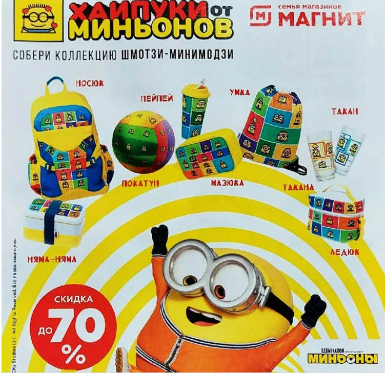 Магнит анонсировал новую акцию, которая опять связана с Миньонами. Снова нужно собирать наклейки и после покупать товары со скидками. В этот раз товары - не игрушки, а вполне себе полезные вещи. Только вот стоят они ого-го, даже если покупать со скидками. Хайпуки - сленговое словечко от слова "Хайп". Ну типа популярные штучки... Условия акции Условия этой акции стандартные для Магнита. Нужно совершать покупки в магазинах сети и получать за это наклейки. Выдают бумажные и электронные, если покупка проводится по бонусной карте. Честно говоря, в последнее время акции Магнита совсем не радуют. Акционные вещи даже с учетом скидок стоят втридорого. У меня у самой уже большее 600 этих электронных наклеек-магнитиков. А тратить просто не на что. Может в этот раз потрачу в новой акции - думала я, когда увидела анонс. Но снова вряд ли... Акционные товары Хайпуки от Миньонов - акция, опять же, рассчитанная на детей. Товары детские, но в целом практичные и действительно могут быть полезными. Чтобы
