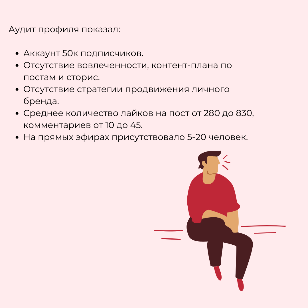 К нам обратился психотерапевт, гипнотерапевт, специалист по психосоматике. Поставил перед нами задачу: с помощью блога в Инстаграм увеличить количество консультаций, их цену. Мы разработали комплексную стратегию продвижения: Изучили ЦА, ее боли и потребности. В соответствии с этим выстроили контент-план для постов и сторис. Каждый пост был направлен либо на выявление и описание боли, либо на простое ее решение. Это резко повысило вовлеченность и отклик от аудитории. Создали личный бренд: визуальную «упаковку», узнаваемую манеру писать посты, подчеркнули высокий уровень экспертности. Получился образ психолога высокого класса, который помогает в любой ситуации, искренне откликается на все запросы, эффективно решает жизненные проблемы клиентов. На начальном этапе работы стоимость консультации эксперта была 3500₽ за 1 час. Разработав стратегию продвижения личного бренда психолога, построив несколько воронок продаж на консультации мы добились увеличения количества консультаций. Запись на к