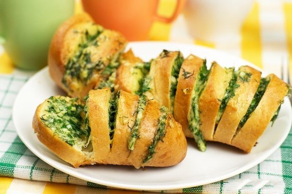 Ингредиенты Батон французский – одна штука. Сыр твердый – сто грамм. Масло сливочное – сто грамм. Чеснок – два зубчика. Зелень – укроп или петрушка. Способ приготовления Натрите на терке твердый сыр и выдавите чеснок через чеснокодавку. Перемешайте с размягченным маслом, добавив в него нарезанную зелень. Все перемешайте до однородного состояния. Сделайте в батоне надрезы, не прорезая их, до конца и заполните приготовленной начинкой. Фаршированный батон заверните в фольгу. После чего поставьте в нагретую до температуры двести градусов духовку на двадцать минут. По истечению этого времени снимите фольгу с батона. Положите обратно в духовку на пять минут для того, что бы батон зарумянился. Приятного аппетита