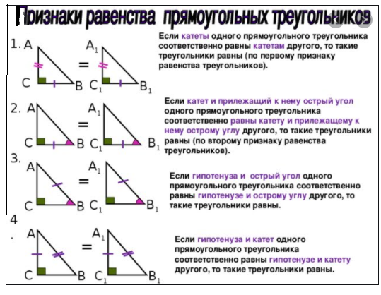 Признаки равенства прямоугольных треугольников