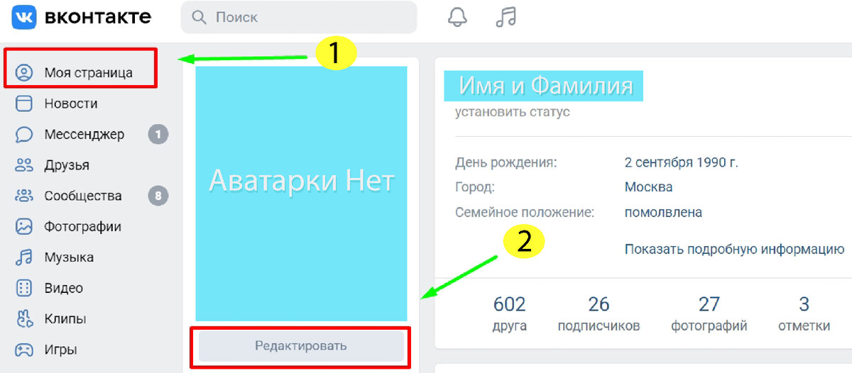 2. Под аватаркой найти кнопку "редактировать". Нажать на неё.