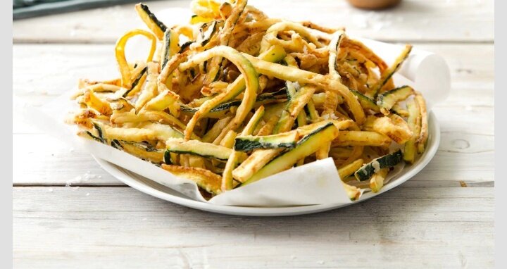 Недорого, просто и очень вкусно: рецепт жареных кабачков alla romana –это универсальный гарнир, отлично сочетающийся с основными блюдами из мяса и рыбы. Ингредиенты: 1 кг кабачков мука арахисовое масло соль Как приготовить жареные кабачки по-римски: Начните готовить кабачки в римском стиле, вымыв и высушив кабачки и удалив два конца. С помощью острого ножа нарежьте их тонкими ломтиками вдоль, а затем разрежьте каждый ломтик на полоски шириной три-четыре миллиметра. Соберите их в большую миску, посыпьте крупной солью и дайте им потерять воду примерно на пятнадцать минут. Удалите воду, которую они выпустили, и осторожно высушите на кухонном полотенце, а затем пропустите в муке. Быстро посыпьте их мукой и сразу просейте, чтобы удалить излишки муки. В большой сковороде разогрейте много масла и обжарьте несколько филе кабачков за раз. Когда они станут бледно-золотистого цвета, удалите их шумовкой или положите вручную на впитывающую кухонную бумагу. Добавляйте соль только при необходимо