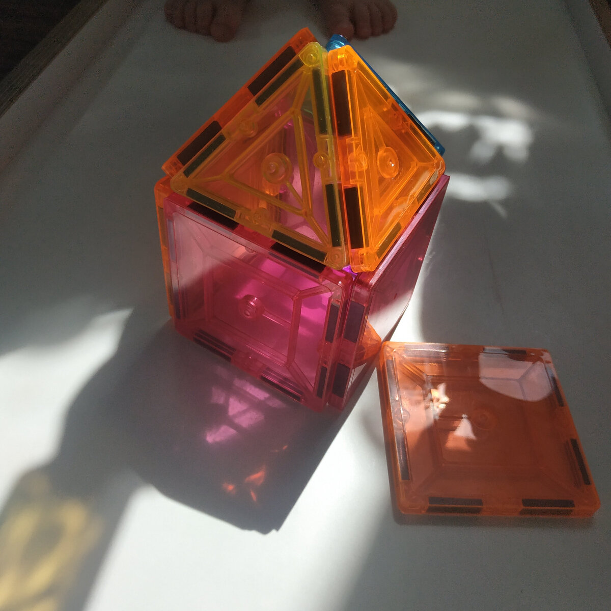 Мой сын чаще всего равнодушен к игрушкам. 10-15 минут и интерес потерян. Растопить его сердечко могут только машинки: разной конфигурации, состава и назначения. Отношусь к этому спокойно, покупаем книги чаще, игрушки реже. Но всё же мне хотелось найти что-то функциональное и "не готовое". Простое. Для развития фантазии. Поиск привел в мир конструктора. Лего Дупло у нас есть, играем, но Лев ещё не дорос. Деревянный пока тоже не в милости. Может магнитный? И здесь уже включился собственный интерес. Выбрала трёхмерный магнитный конструктор Jumei, magnetic paradise. Детали из безопасного полупрозрачного цветного пластика пропускают свет. И здесь начинается самое интересное: включается мир фантазий и креатива. Как мы используем: Если ищите занятие для каждого члена семьи, это оно. Конструктор не теряет актуальности изо дня в день, даже на отдых с собой брали. В наборе 28 деталей и мешочек для хранения. Порекомендуйте, пожалуйста, подобные игры, которые надолго "захватили" ваших детей? Н