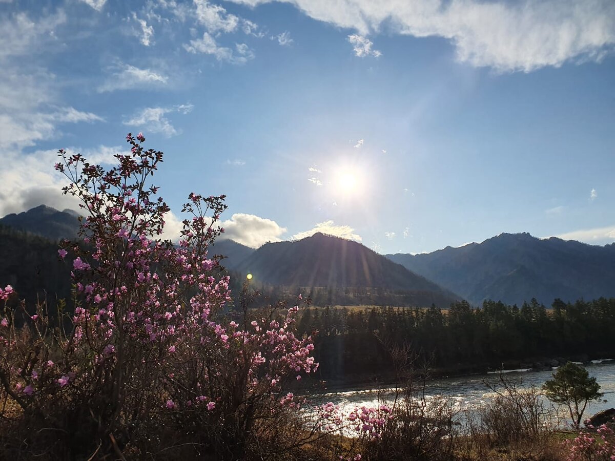 Выехали мы из Томска 29 го апреля, с целью встретить первое мая в Горном Алтае , немного отвлечься и взглянуть хоть одним глазком, как цветёт рододендрон - «алтайская сакура», ну или маральник, как кому нравится.А также хотели попасть на праздник « Цветение маральника », который проходит каждый год на территории туркомплекса « Бирюзовая Катунь ». Цветёт маральник всего пару недель, а мы , наивные , думали , что вот прямо в начале мая и будет буйное цветение ... Но обо всем по порядку. Решила рассказ разбить на части и показывать