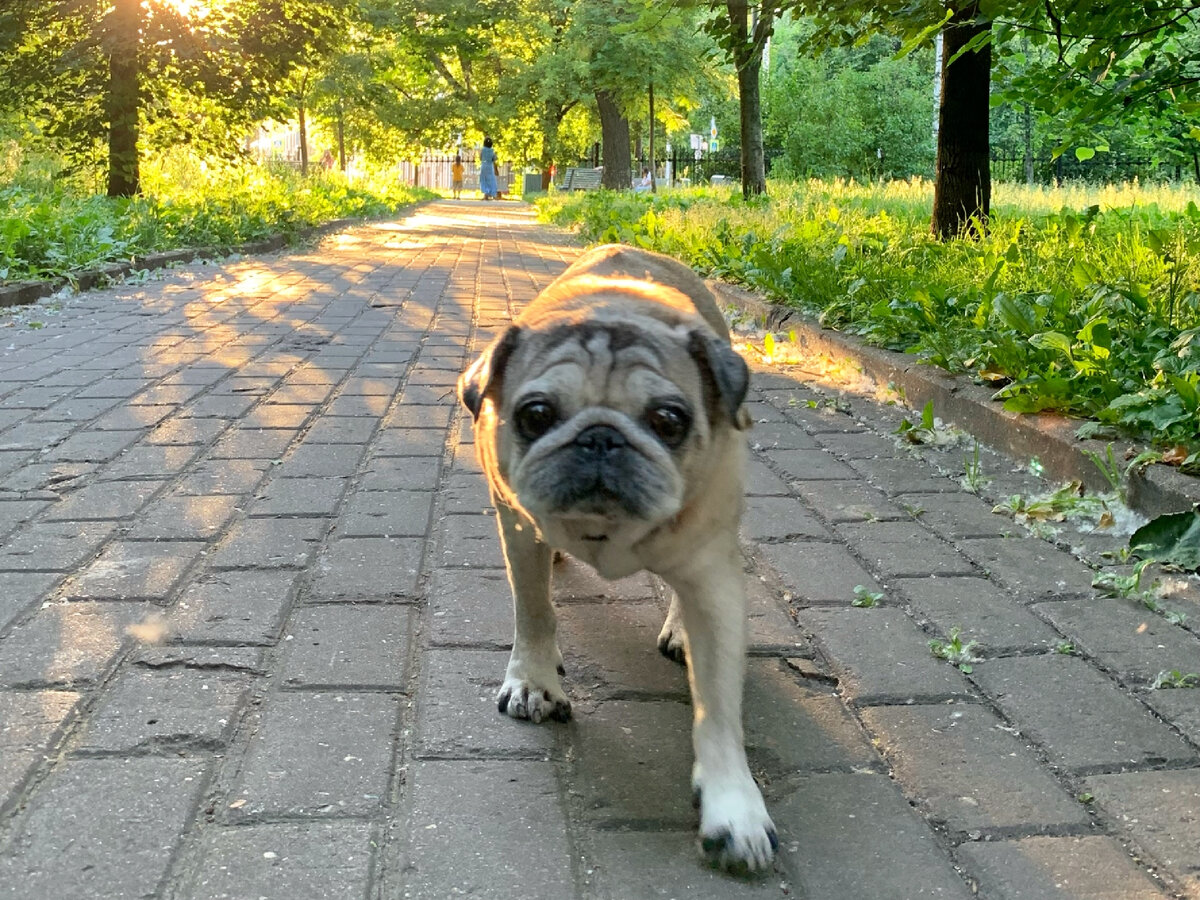Моей собаке 12 лет, и у неё начались дегенеративные процессы опорно-двигательного аппарата. К сожалению, это необратимо, предыдущие хозяева совершенно не заботились о ее здоровье и не проводили никакую профилактику, а теперь уже поздно. При этом Нюша обожает гулять, очень радуется каждый раз, когда я беру в руки поводок, закатывает истерику, если я слишком долго одеваюсь, а потом с большим удовольствием обнюхивает все, что встречается на пути. Но во время прогулки она быстро устает и передвигается со скоростью раненой черепашки, хотя домой ее так просто не загонишь. Несмотря на это гулять с ней очень интересно. Очень быстро выяснилось, что у нее явно выраженное раздвоение личности, и в момент, когда мы проходим мимо мест, где кормят голубей, ее разумом завладевает альтернативная личность - голубь, который мигом начинает топтаться в поисках съестного. Эта же личность завела себе двух подружек - пожилых женщин, которые присматривают за цветами на клумбе у соседнего дома и частенько подк