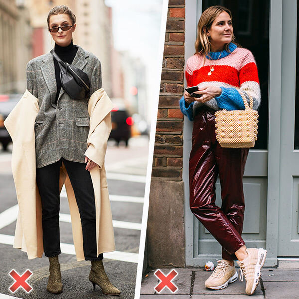 Полукруглая вместительная сумка, которая, по задумке, сможет легко вместить бутылку шампанского, стала односезонным трендом. Дизайнеры, видимо, вдохновились эпохой 2000-х, но не все аксессуары из прошлого стоит воскрешать. Сумка-бочонок выглядит очень старомодно и зрительно искажает пропорции фигуры.