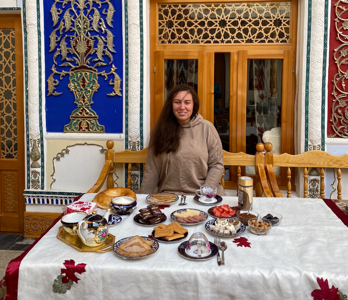 А вы знали, что в список наследия ЮНЕСКО может попасть и отдельная комната в большом доме, даже если она жилая, и хозяевам кроме нее жить негде? Когда мы собирались ехать в Бухару и позвонили знакомому из Ташкента, чтобы узнать о каком-нибудь интересном отеле поблизости от основных достопримечательностей, тот нам посоветовал гостевой дом "Koh-i-noor". Тогда он сказал: «Одна из его комнат входит в список наследия ЮНЕСКО. Он рядом с центром, но в то же время к нему можно подъехать на машине" (ко многим отелям в историческом центре нельзя подъехать, там пешеходная зона). Как и в большинстве гостиниц, по центру располагался просторный внутренний дворик, оформленный в национальном стиле. Тут можно было покушать или просто посидеть и подышать свежим воздухом. Хозяйка предложила нам несколько комнат на выбор, они отличались количеством спальных мест и дизайном. Кроме нас в гостевом доме никого из гостей не было, как и в большинстве мест, где мы останавливались, поскольку мы приехали сразу по