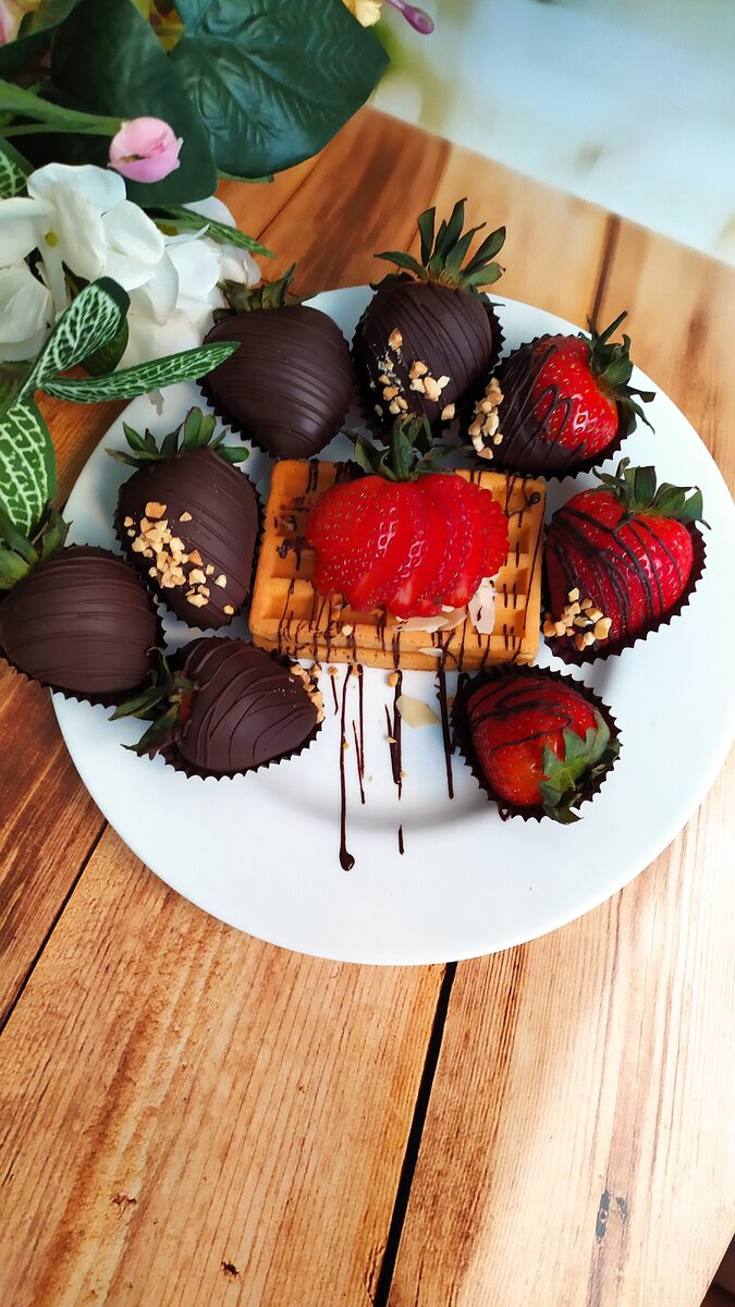 Пробовали когда нибудь клубнику в шоколаде? Довольно распространенный вид подарочного десерта Очень аппетитно выглядит,а главное вкусно.А вкус составляет как раз не только сама клубника, но и шоколад!Да не простая шоколадка используется для такой клубники,а натуральный шоколад из какао масла без добавления пальмового! Он достаточно дорогой,как правило бельгийского производителя Kallebaut, темный, молочный или белый.Есть ещё изумительное чудо природы из рубиновых какао бобов шоколад Rubi Конечно, не на каждый день десерт.А именно праздничный благодаря красивому оформлению самой клубники и упаковки.Да ещё и шоколад темперировать нужно, а без дорогостоящего пирометра это сложно сделать правильно. А если всё же не на подарок,а просто хочется попробовать,то конечно же можно растопить любимую шоколадку,окунуть в неё клубничку,посыпать орешками или кокосовой стружкой, оставить застывать в холодильнике,а потом с огромным удовольствием слопать! Приятного аппетита!!!