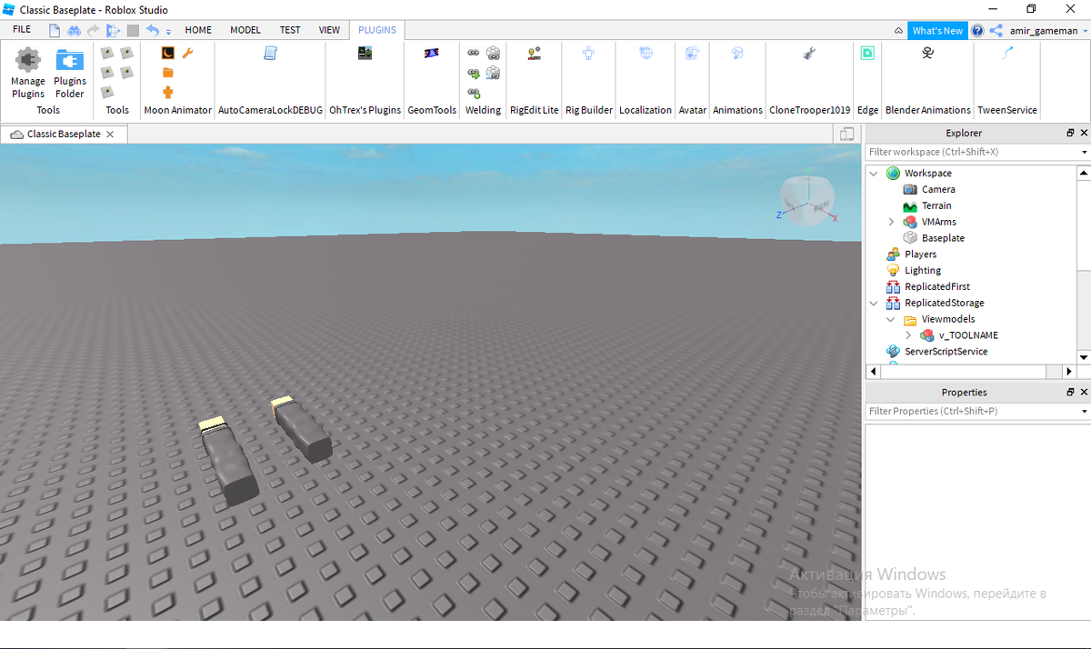 Мы уже сделали крутой домик в прошлой части. (кстати, теперь я опубликовал модельку моего дома, и вы можете свободно скопировать и тренировать скиллы в строительстве. Вот моделька: https://www.roblox.com/library/6966714902/ ). Теперь, мы займёмся самой главной, и самой крутой частью roblox studio - скриптинг. Для жанра подойдёт FPS (first person shooter). Кстати, мой любимый. Начнём. (Кстати, теперь у меня Properties будет Пропс и Explore будет Экс Для начала! Вам нужно установить 2 плагина в роблокс студио: https://web.roblox.com/library/3919577710/camera-locker-thing-idk?ViewInBrowser=true&CreatorId=22306125&SearchId=1FB6439B-BE8B-4D60-9082-3E69003315AE&Category=Plugin&Position=3&SearchKeyword=&CreatorType=User&SortType=Relevance (camera locker thing idk) https://web.roblox.com/library/1274343708/RigEdit-Lite?ViewInBrowser=true&CreatorId=4416634&SearchId=1FB6439B-BE8B-4D60-9082-3E69003315AE&Category=Plugin&Position=15&SearchKeyword=&CreatorType=User&SortType=Relevance (RigEdit lite)