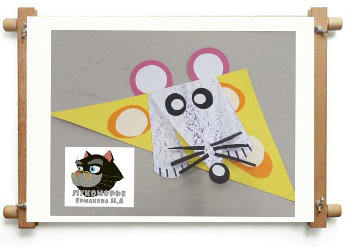Объемная аппликация с пошаговым фото "Мышка" Автор: Наталья Александровна Ермакова, Преподаватель дополнительного образования высшей категории, МБОУ СОШ №6 имени Героя Советского Союза А.В. Попова, город Великие Луки, Псковская область Цель: выполнение объёмной аппликации "Мышка с сыром"