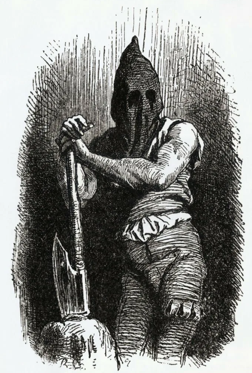 Маску, которую так часто показывают в кино, реальный палач обычно не надевал. Маска была на палаче при казни английского короля Англии Карла I, но это был единичный случай.