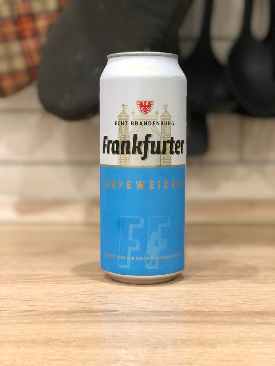 Хорошего пива много не бывает, видимо с такой позиции и идёт караван новинок с Западной Европы в вашу страну. Как раз одну из таких на днях и повстречал в ближайшем к дому магазине Магнит. А заприметил я там невзрачную бело-голубую банку с надписью Frankfurter Hefeweizen. Весь внешний вид показывал, что пиво прибыло к нам из Германии, а не является творением отечественных пивоваров. Как видно из названия варится пиво в городе Франкфурт. Но не в крупном городе-финансовом центре Германии, который расположен на Майне, а в его младшем тезке, который раскинулся на реке Одер, которая протекает по границе Германии и Польши. Именно там, во Франкфурте-на-Одере и варит это пиво пивоварня в Frankfurter Brauhaus. Пивоварня ранее мне не известная, поэтому я полез в пивную социальную сеть Untappd посмотреть, что интересного есть у немцев. И как оказалось ничего особенного. Что сразу бросается в глаза, так это низкий рейтинг у всей производимой Frankfurter Brauhaus продукции. Кстати, судя по Untappd