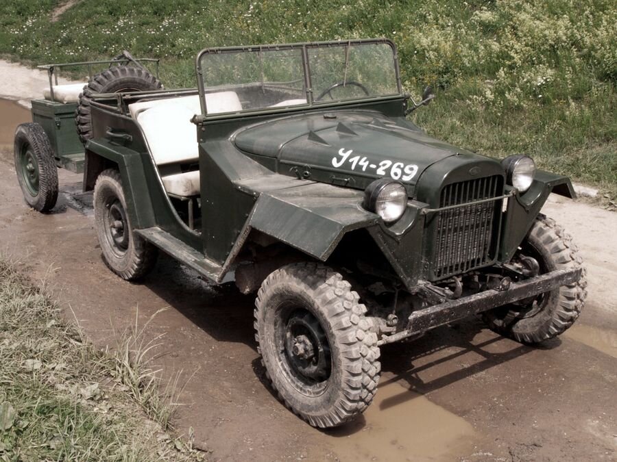 Самый легендарный и боевой из всех советских военных полноприводных легковых автомобилей ГАЗ-67 успел с 1943 года активно повоевать, как в качестве командирского и разведывательного автомобиля, так и в виде артиллерийского тягача. До окончания Второй мировой войны было выпущено около 8000 единиц ГАЗ-67. Испытывали военный внедорожник, как ни один автомобиль в СССР: он прошел 2200 км с 76-мм пушкой ЗИС-3 массой 1850 кг, из них 930 км по просёлочным дорогам и 550 км по выбитому булыжнику. Для надежности и лучшей проходимости у ГАЗ-67 была на 755 мм укорочена колесная база по сравнению с ГАЗ-61. Этим же качествам подчинили модернизацию подвески и ходовой части автомобиля. Кроме того ГАЗ-67 поставили на шины с грунтозацепами типа «расчленённая ёлка» размером 6,50-16. Электрооборудование использовалось от ГАЗ-М1 и ГАЗ-ММ. Кузов для быстрой эвакуации был бездверным на 4-х человек, плюс еще двое могли сесть по бокам на полках задних крыльев. Здесь же были ящики для оружия, боеприпасов и рации