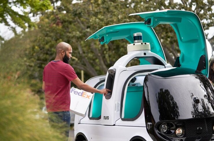 Логистический гигант FedEx начал сотрудничество с разработчиком роботов-курьеров Nuro для тестирования роботизированной доставки посылок. Компания Nuro недавно получила разрешение от Министерства транспорта Калифорнии на работу роботов-доставщиков на дорогах общего пользования. Робот R2 изначально был запущен для доставки интернет заказов из продуктовых магазинов и пиццы из Domino's Pizza в некоторые районы Хьюстона. Автономный электрический робот имеет внутри два грузовых отсека с двумя дверцами, открывающимися с правой стороны робота, что делает его идеальным для доставки пакетов с продуктами, пиццы или небольших посылок. FedEx будет использовать пилотную программу тестирования для изучения вариантов использования беспилотной доставки по нескольким пунктам обслуживания. Вероятно внутреннее пространство для хранения заказов будет переоборудовано для создания системы ячеек, чтобы робот мог вмещать десяток посылок, адресованных разным пользователям, а не две, как это преду