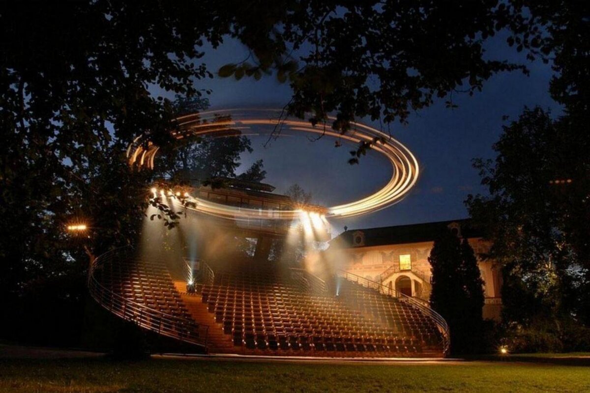 Театр под открытым небом с вращающимся зрительным залом, уютно расположился позади роскошного Барочного театра замка города Чешский Крумлов💎 Он находится в самом центре территории замка, недалеко от летнего дворца «Беллари Рококо», который также служит задней стеной его зрительного зала. Идея использования летнего дворца и окружающего парка для устройства театра под открытым небом появилась в 1958 году и принадлежит труппе Театра Южной Богемии из города Ческе Будеёвице✨ Представления проводятся в летние месяцы. Помимо опер в репертуар входят балеты, сказки для детей и пьесы, специально написанные для этого театра☘️ В этом году сезон театра под открытым небом откроет специальный аудиовизуальный проект «Звездный двойник». Все представления снабжены субтитрами на немецком и английском языках, а также подходят для зрителей с нарушениями слуха💫 Программа представлений на 2021 год: 🔸10–26 июня 2021 года «Звездный двойник» Захватывающая история о необычном человеке 🔸4–14 и 18
