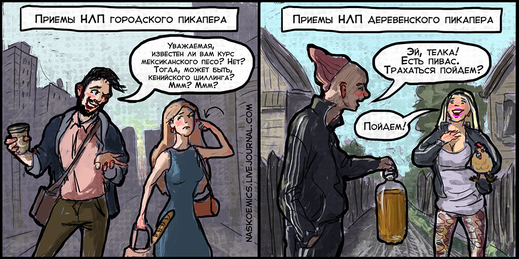 Всем девушкам хорошо бы навсегда понять, что нормальному мужчине, воспитанному, скромному, порядочному, как раз очень часто бывает тяжело сделать первый шаг в сторону женщины, даже если она ему очень нравится или особенно потому, что она ему очень нравится. И только пикаперам легко переживать отказы, потому что они получают их столько, что уже привыкли. Вспомните старый анекдот о поручике Ржевском: поручик, в чем секрет вашей популярности? Я предлагаю всем, девять из десяти отказываются, а десятая соглашается. Так и его современные последователи – просто предлагают всем, а там как пойдет. Я недавно на сайте вычислила и разговорила одного из них, честно признавшись, что напишу потом статью. Так вот он признался, что женщинам бывает просто одиноко, бывает не с кем провести время, а так хочется, бывает, очень тянет отомстить бывшему или настоящему, который, к примеру, изменил и просто сильно накосячил, не приехал на день рождения тещи, к примеру, бывает, просто гормоны бушуют, ох, уж эти