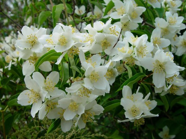 Цветы сирени (садового жасмина) имеют кипенно-белый окрас, что делает его очень нежным, воздушным, вызывает ассоциации с чем-то прекрасным и невинным. Кустарник очень ароматно пахнет, поэтому подойдет любителям растений с яркими и приятными запахами. Высота чубушника в пределах одного-четырех метров. Хорошо растет и на солнце, и в местах с рассеянным светом.