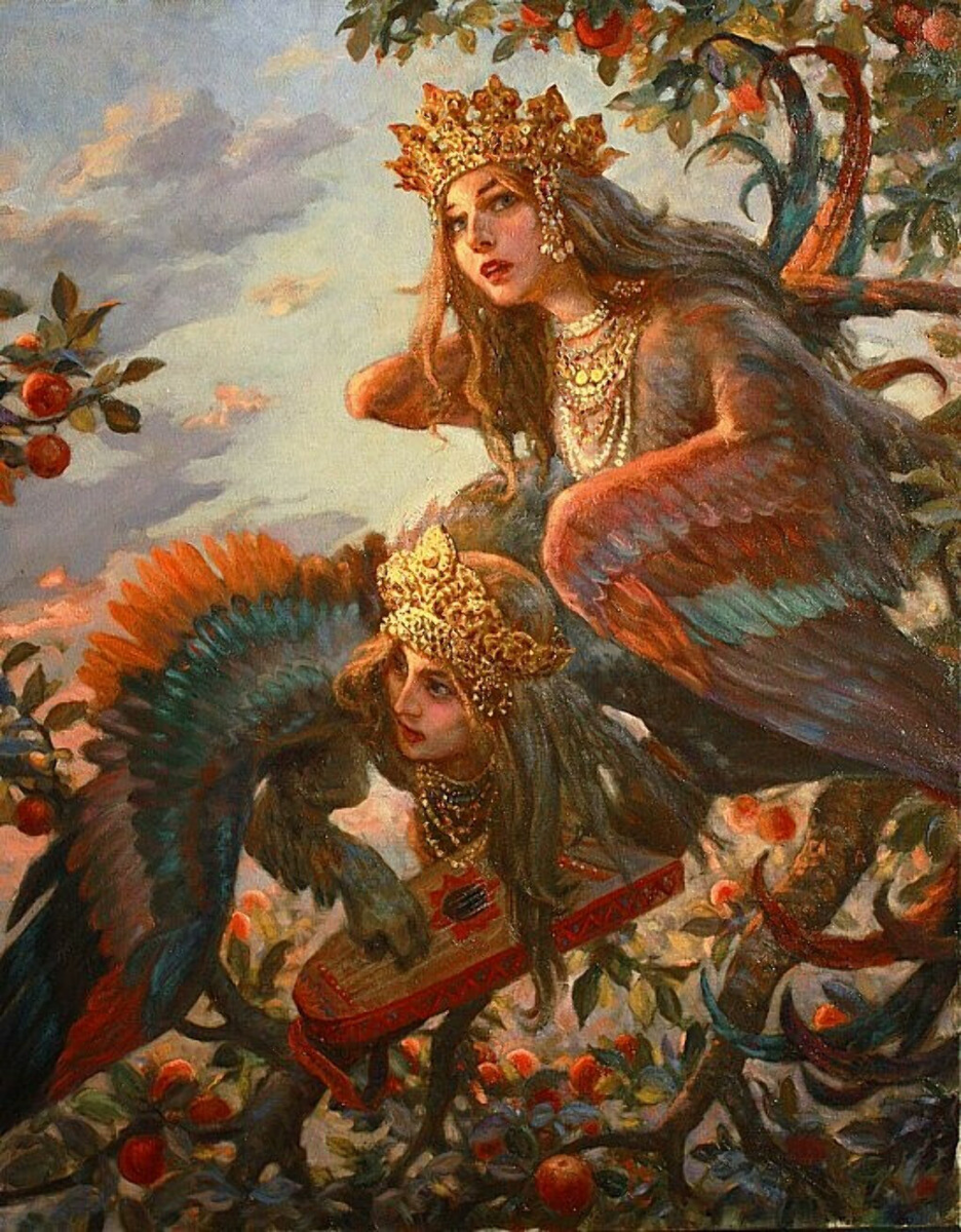 В Ирии ─ славянском раю ─ обитали не только Боги и мертвые. По верованиям славян туда отправлялись на зимовку птицы и змеи. Оттуда в мир людей спускались Сирин, Алконост и прочие крылатые создания. О некоторых из них я уже рассказывала здесь. Птица Гамаюн Это совершенно особенная птица. У нее нет ни ног, ни крыльев, а летает она с помощью своего хвоста. Своеобразная в общем птичка, этакое перьевое ядро с вечным двигателем в...кхм, хвосте. В более поздних изображениях ей все-таки вернули все конечности, а также наделили женским лицом и способностью говорить. Падение птицы Гамаюн предвещает скорую смерть правителям. А вот если пролетит она низко над головой человека, да коснется его крылом, ждет того счастье великое. Потому птицу Гамаюн считают вещей. Птица Могол Весьма неоднозначная фигура. Это огромная птица, живущая на краю тридевятого царства, но умеющая перемещаться между всеми тремя мирами. Она не злая и не добрая. Она может как разозлиться и мешать герою в его пути, так и стать