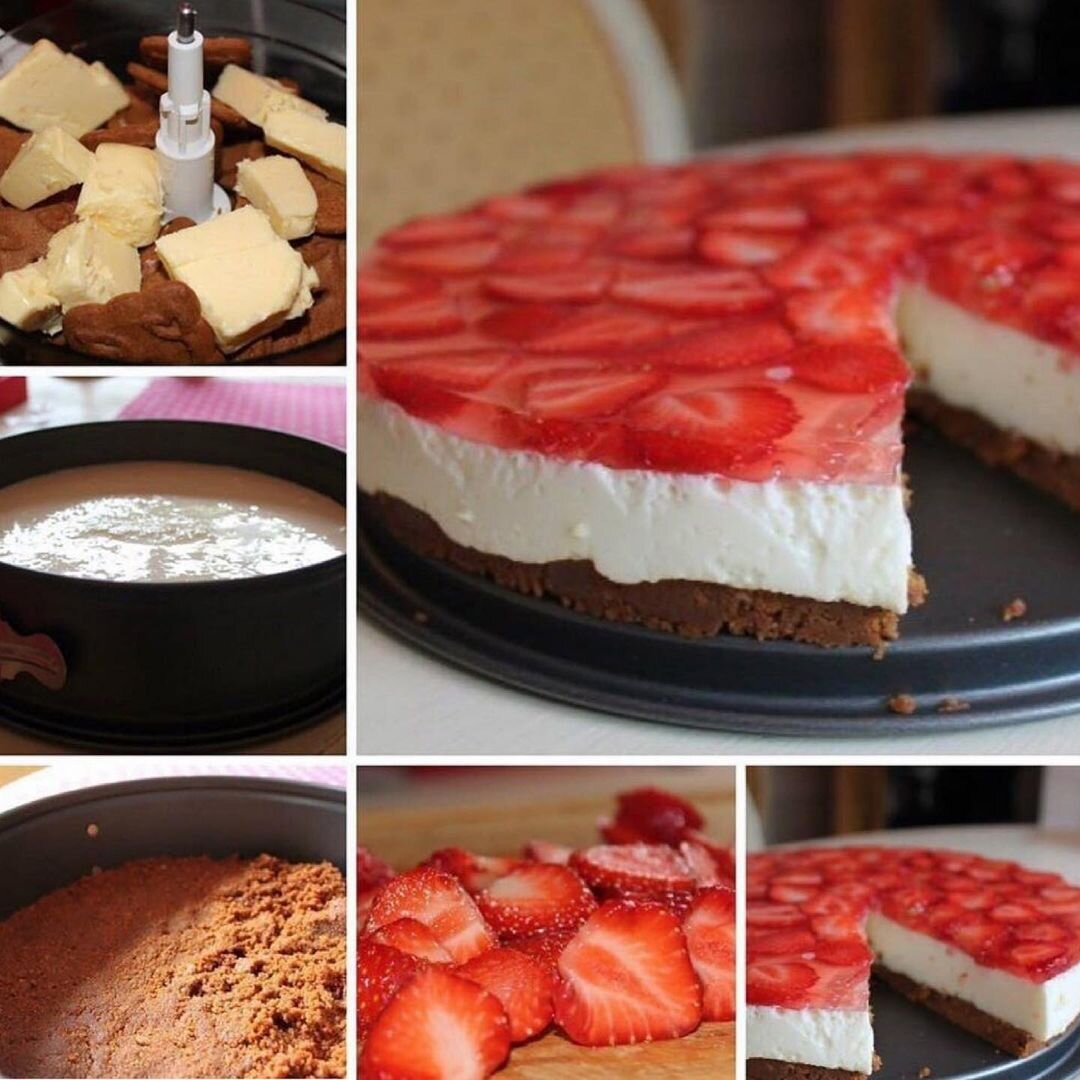 ᅠ Покройте всю поверхность чизкейка клубникой и залейте все клубничным желе после чего отправьте чизкейк в холодильник. Через час Ваш чизкейк готов. ᅠ