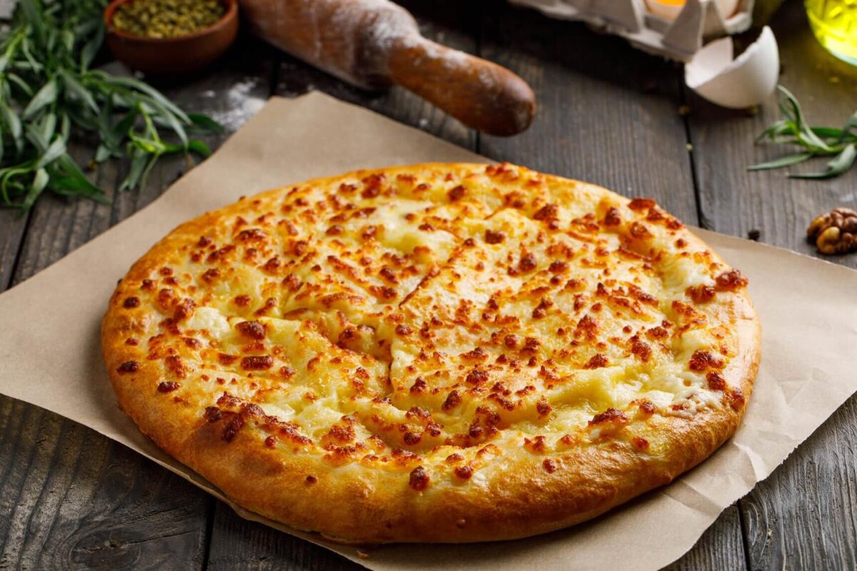 7. Выпекаем хачапури на сковороде с обеих сторон без масла до золотистого цвета. Чтобы лучше пропеклись, можно накрыть сковороду крышкой.