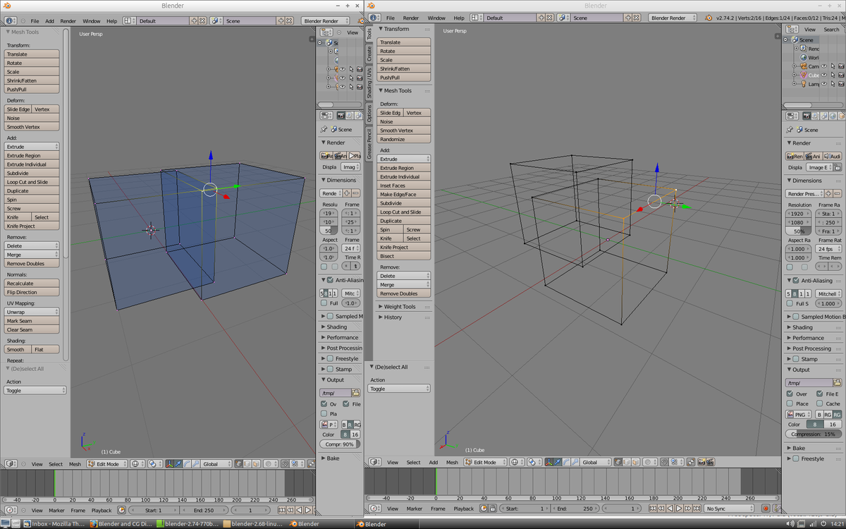 Конечно, как у любого диджитал артиста, основной инструмент в работе у меня – Photoshop, как бы он этому не сопротивлялся. Однако уже значительное время с ним на равных я использую Blender 3D в работе и повседневной жизни. И мне ничего не остаётся, как поделиться с Вами своей радостью от его использования. Я познакомился с Blender в далёком 2010-м году. Будучи уже крепким техдизайнером, я понял, что для дальнейшего развития мне понадобиться что-то большее чем Photoshop. Открыв 3D-Max – самая распространённая программа тех времён – я был впечатлён его монструозностью и тут же его закрыл. Cinema 4D, Maya, Zbrash и другие пакеты тоже не блистали человеколюбием и я приуныл. И вдруг, в одной статье «3D для начинающих» забрезжил лучик света. Там писали об очень мощной и перспективной рограммке в свободном доступе. Blender 3D 2.4: Сейчас, знающие люди содрогнулись, потому что интерфейс у перспективной программки был как у 3D-Макса сейчас. Непролазный. Пришлось отложить сиё знакомство на потом