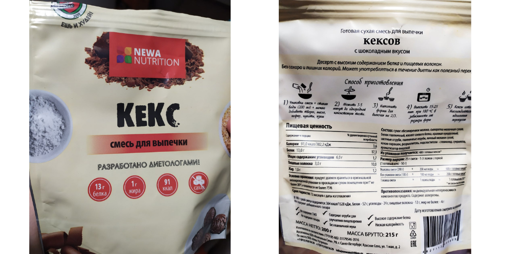 А вы любите выпечку? Лично я очень люблю! Но, чтобы ей не испортить фигуру, стараюсь готовить диетические варианты. Получается вкусно и бюджетно. Однако нужно заморочиться. Приготовить предварительно овсяную муку (геркулес смолоть), продумать вкусо-ароматику. Чтобы было с минимум калорий и вкус максимально похож на обычную выпечку. Бывает удачные варианты, а бывает попадаю впросак... Приготовила себе ПП-выпечку, а получила запеченную овсянку:( Да и не всегда бывает время на готовку. Как никак - многодетная мама с маленькими детьми))) Поэтому я озаботилась, есть ли готовые варианты диетической выпечки? Оказалось, их сейчас великое множество! Но, тут же возникает парадокс выбора: какой лучше? Вот и решила продегустировать ряд готовых смесей для диетической выпечки. И выложить по ним обзор: состав, способ приготовления, как на вкус и стоит ли покупать? Итак, сегодня вашему вниманию обзор на смесь для выпечки кексов NEWA NUTRITION. Состав тоже меня устроил: сухое обезжиренно