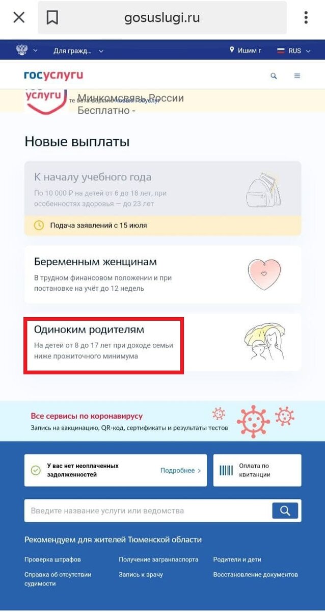 С 1 июля 2021 года начался прием заявлений на новую выплату одиноким родителям воспитывающих детей от 8 до 17 лет. Подробно о том, кому положено данное пособие и о всех критериях для его получения я рассказала в этой статье . Подать заявление на ежемесячную выплату можно лично в Пенсионном фонде или оформить дистанционно через сайт Госуслуги. Для этого вы должны иметь подтвержденную учетную запись на портале, и после входа на сайт Госуслуги по ссылке https://www.gosuslugi.ru и авторизации открывается главное окно, где в разделе популярное вы увидите эту услугу: Далее открываем форму подачи заявления и начинаем заполнять заявление которое состоит из нескольких блоков. 1. Ваши персональные данные, они автоматически под грузятся из сайта госуслуги ваша задача все внимательно проверить и если что-то изменилось исправить, проверяем ФИО, номер телефона и адрес электронной почты, паспортные данные и адрес. 2 блок Дополнительные сведения о вас, здесь отмечаете галочкой ту жизненную ситуацию