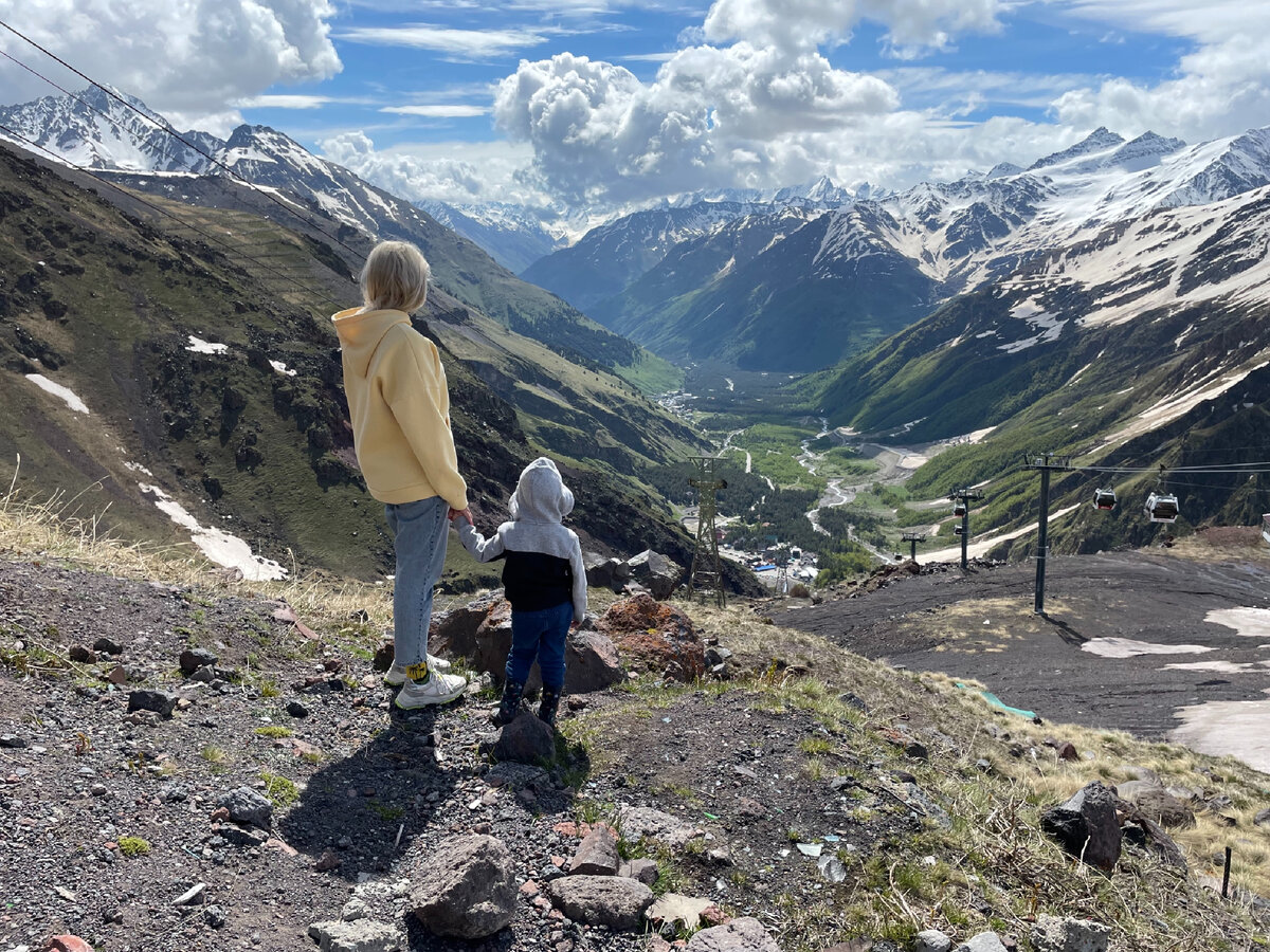 На саму вершину Эльбруса (5642 метра) без специальной подготовки подняться не получится. Зато можно в комфортных кабинках канатной дороги подняться до станции #Гара-Баши , которая находится на высоте 3847 метров. Подробная статья с нашим опытом подъема с маленьким ребенком по ссылке ниже: