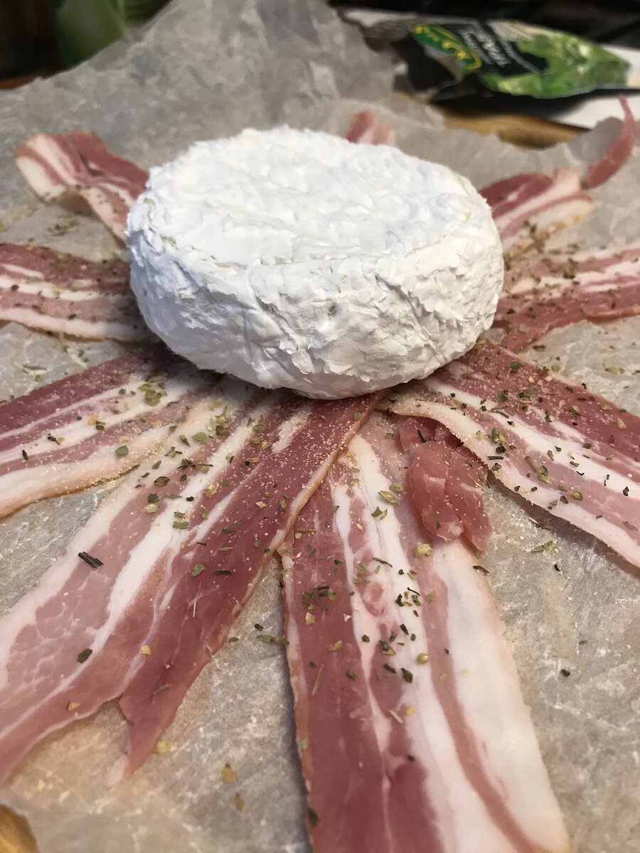 Я теперь точно знаю, какую закуску буду готовить по праздникам. Было у меня время и был у меня шикарный бекон от шефа Григория Мосина. Он и сотоварищи делают просто чумовые мясные деликатесы. И бекон не исключение. Правда не дешёвый, но он был по скидке, так что можно шикануть. Самое главное в этой закуске - это плотно обернуть сыр беконом, что б ни одной дырочки не оставить. Я ещё дополнительно добавил соли и прованских трав с чёрным перцем. Собственно всё. Обернули в фольгу и в духовку на 180 градусов на 20 минут примерно. Можно ещё бекон смазать соусом из мёда с горчицей для более яркого вкуса. Но это уже потом. Через 20 минут, когда фольгу раскроете, и под гриль, для румяной корочки поставите))).Можно ещё BBQ соусом смазать. Но обязательно хорошим. Употреблять на серой, поджаренной гренке. И обязательно с кусочком бекона. Понравилась заметка? Жду отзывов и предложений, а если есть вопросы, то задавайте их в комментариях. Подписывайтесь на канал и до встречи)))