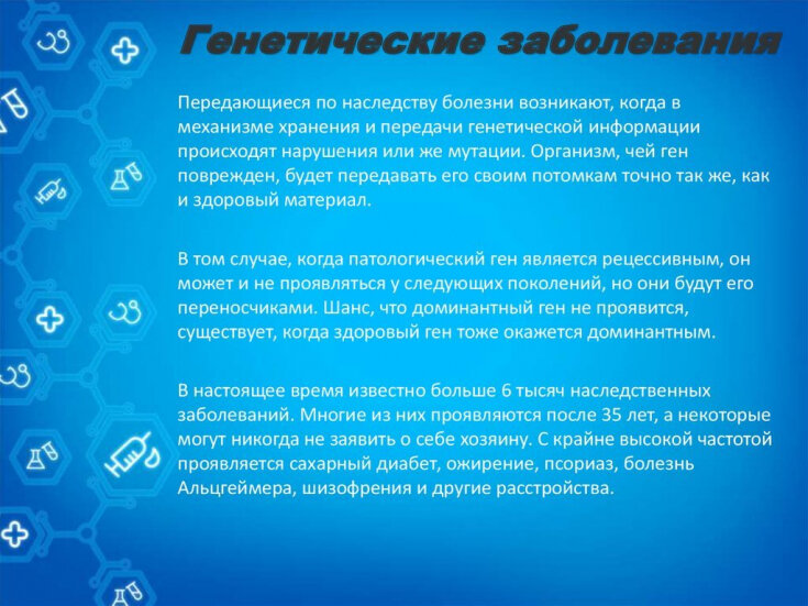 Учёные-медики назвали список болезней, которые передаются по наследству