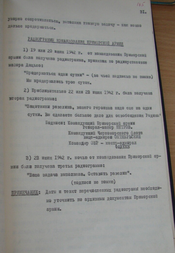 Понедельник 22 июня 1942г. (Жарко, сухо, легкий ветер, облачно +38) Немецкая 24-я пд была оставлена на зачистке Северной стороны. 132-я пд была отозвана в резерв корпуса. 24-я пд продолжила боевые действия на Северной стороне. Как отмечает донесение 24-й пд «В бухте наблюдалось оживленное движение нескольких мелких моторных плавсредств, которое прекратилось после того, как артиллерия открыла огонь. Утром 102-й пехотный полк противника, при слабом сопротивлении захватил форт Михайловский, захвачено 73 человека пленными, несколько грузовиков и пушек[1]. По «официальной» советской версии его гарнизон сражался до 24-го июня 1942 года. Противник захватил остатки полевой и зенитной артиллерии, собранные на причале у Михайловского форта для эвакуации. По немецким данным в ходе захвата Михайловского форта 22.06.42г. были захвачены три 7,62 см зенитных пушки, три 15 смпушки, три бронетрактора (по другим данным, 3 тягача), 3 бронеавтомобиля, 40-50 грузовиков, 4 бота (из них два мотобота), 40 лош