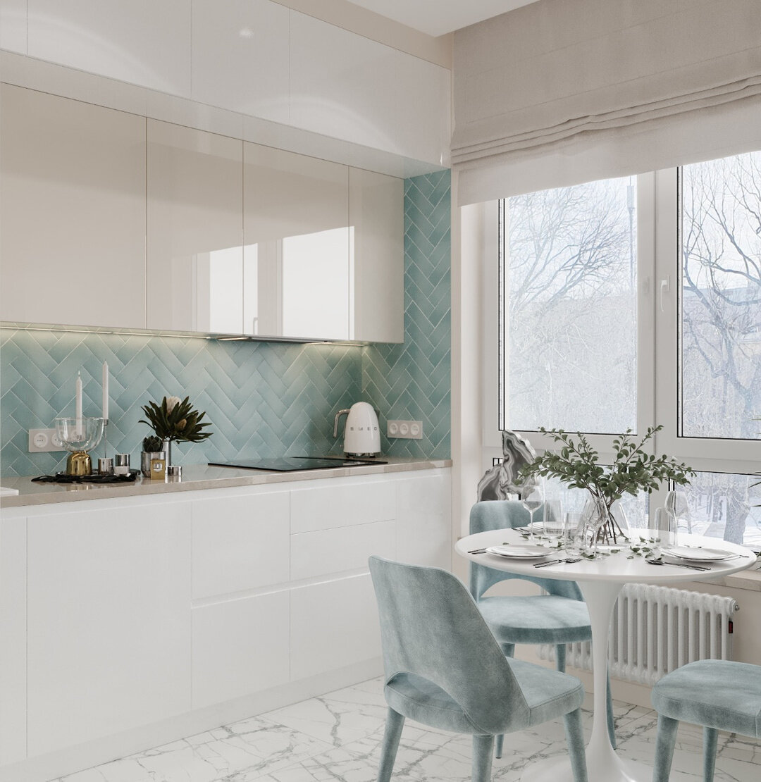 Нет ничего более постоянного, чем временное. Нет ничего хуже, чем косметический ремонт. О чём это я? О том, что если соотнести потраченное время и деньги на косметический ремонт с итоговым результатом, то получается полная ерунда. Другими словами - деньги и время в никуда. Хозяйка кухни в статье приняла решение чуть-чуть поднакопить и сделать полноценный ремонт на кухне и вот что получилось. Светлая, удивительная кухня в обычной российской квартире. Как Вы видите кухня стандартных размеров на 12 кв. м. А теперь рассмотрим, какие же это простые мелочи, которые в скопе на выходе дают такой дизайн. Конечно же - это светлый кухонный гарнитур, который выполнен в двух оттенках и навесные шкафы сделаны под потолок, чтобы максимально использовать пространство на кухне. Отдельного внимания заслуживает кухонный фартук, который на свободной стене уходит в потолок. Выполнен он из обычной плитки "кабанчик", но необычного цвета и метода раскладки. Всё чаще хозяйки предпочитают поднимать выше духовой