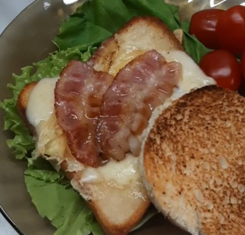 Сынок слопал два бутерброда . Радости море. А хрустящий бекончик вообще красота