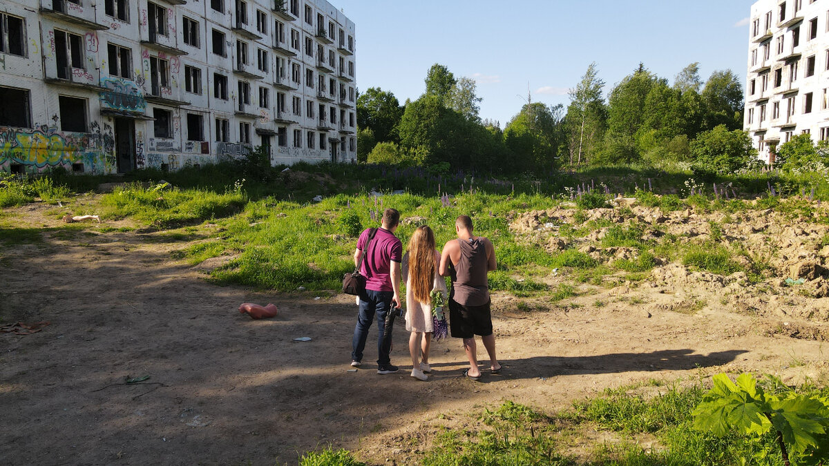 Мрачные бетонные пятиэтажки возвышаются над деревьями и следят за каждым нашим движением своими чёрными окнами-глазницами. Находиться здесь неуютно. Не покидает ощущение, что за нами действительно кто-то наблюдал из этих окон всё время, что мы там находились. К этому я вернусь чуть позже. Одно могу сказать: очень хорошо, что мы поехали туда днём, а не ночью...