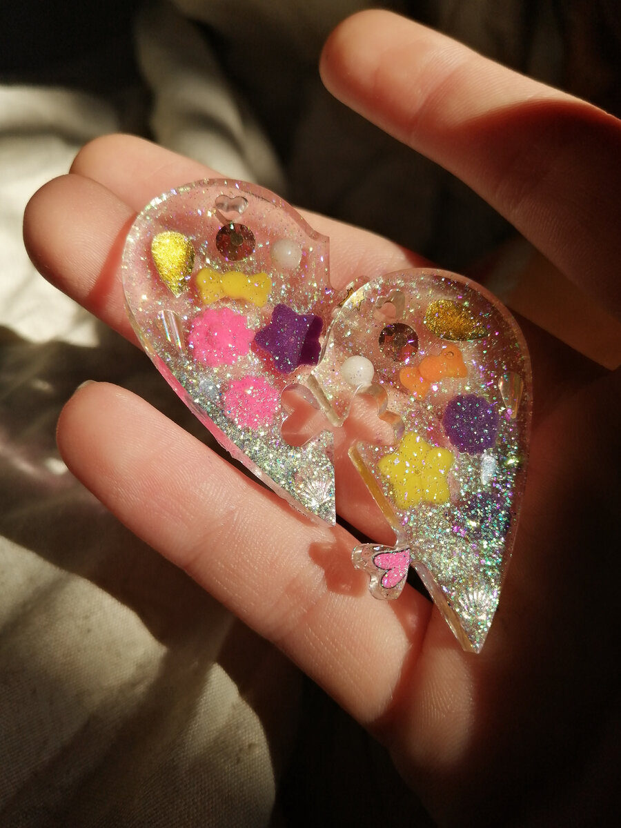 Как сделать украшения из эпоксидной смолы Из эпоксидной смолы можно делать многое: серьги, подвески, кольца. Она является очень популярным материалом для рукоделия в этом году. Итак, что же понадобится для изготовления украшений? Конечно же сама смола, но без формочек смоле не получиться придать форму, так что они тоже являются неотъемлемой частью. Так же нам понадобится: посуда для смешивания смолы с отвердителем, палочка для перемешивания, небольшие весы (для расчёта нужного количество отвердителя и смолы). Необязательно, но вы можете добавлять какие-либо украшения в смолу например: специальные красители, поталь, посыпки, шармы, и т.д. Итак, приступим к изготовлению, объяснять я буду на примере своей работы (парные кулоны BF). 1. Для начала одеваем респиратор, перчатки, закрытую одежду и подготовить рабочую поверхность. 2. Затем подготавливаем весы и отмеряем нужное количество смолы и отвердителя указанное на упаковке(у разных производителей разное соотношение). 3. Перемешиваем мате
