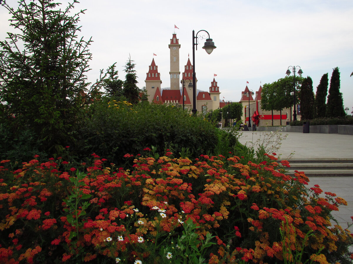 Но стилизованные улицы Рима, Барселоны, Лондона и Беверли-Хиллз всё же стекаются к центру Городского променада, к центральной площади "Москва".