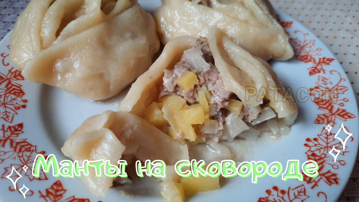 Канал PATACON приветствует тебя!!! Манты это целое отдельное блюдо и готовятся они очень просто и быстро. Рецепт, которым хочу поделиться сегодня, знаком мне с детства. Вкусный, сочный и лёгкий. Приготовление начнем с теста. В воду добавляем соль и перемешиваем, чтобы соль разошлась. Затем добавляем просеянную муку и замешиваем тесто. Месить тесто нужно хорошо, оно должно быть мягким и гладким. Затем убираем в мешочек, пусть отдыхает (так же можно просто накрыть полотенцем). Пока тесто отдыхает займемся начинкой. Капусту и картофель нарезаем на мелкие кубики. Толстую часть капусты мы убираем. Лук натираем на крупной терке. И все смешиваем. Фарш, капусту, картофель, лук, соль и специи. Как только тесто отдохнуло и начинка готова, займемся самими мантами. Часть теста отрезаем, раскатываем в колбаску и нарезаем на небольшие кусочки (кусочки должны быть больше, чем на пельмени). Затем рассказываем на кружочки. Выкладываем начинку и формируем мант. Как только манты сформировали можно и