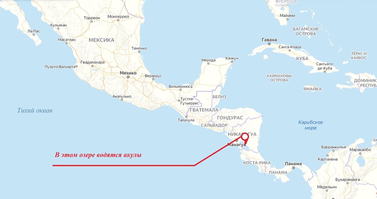 Пресноводное озеро Никарагуа, что в Латинской Америке знаменито не своей чистотой и глубиной, а более интересными фактами. Это единственное озеро в мире, где обитают акулы. Причем не какие-то декоративные, а трехметровые свирепые гиганты, которые так и зовутся - Никарагуанские акулы. Но как морские обитатели могли оказаться в пресной воде? Никарагуанская акула, полностью приспособилась к пресной воде, это единственный такой вид, из более чем 500 известных. Это вид акул, один из самых свирепых, после Белых, Тигровых, и акулы Бык. Последняя кстати говоря, имеет непосредственное отношение к Никарагуанской, поскольку ее так же называют Бычьей. Никарагуанская акула может наносить сильнейшие укусы, и как правило не останавливается на этом, а спешит уничтожить жертву. Этот вид акул, любит охотиться как днем так и ночью, поэтому купаться здесь всегда опасно. Глубина озера довольно таки небольшая и не превышает семидесяти метров. Обитающие здесь акулы, наводят ужас на местных жителей и многочи